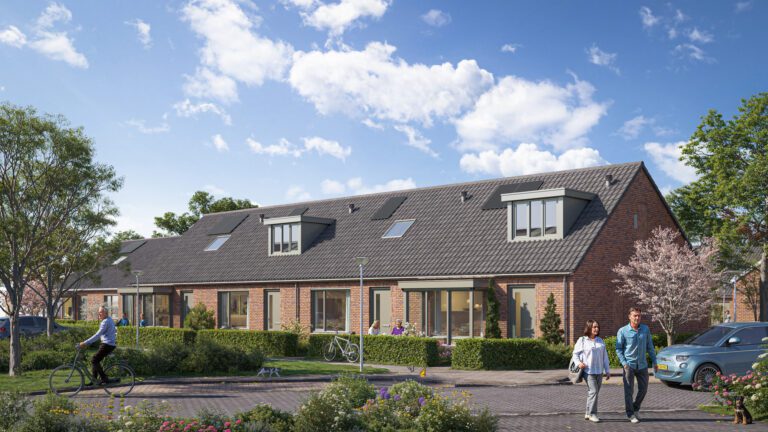 De woningen stralen eenvoud en rust uit, met veel aandacht voor de afwerking. Zo zorgen speelse variaties in het metselwerk voor een levendig en aantrekkelijk straatbeeld. Achter in de tuin vind je een praktische houten berging, terwijl de erfafscheidingen worden gevormd door groene hagen. Natuurlijk, vriendelijk én onderhoudsvriendelijk wonen staat hier centraal.